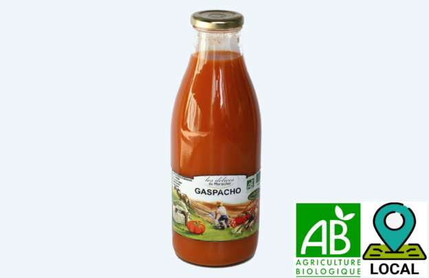 Ce gaspacho Bio est à consommer glacé avec des dés de tomates, des croûtons ou des gressins.