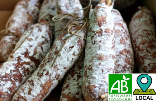 Saucisson Boeuf d’Aubrac Bio (2/3) et porc (1/3) par environ 280gr